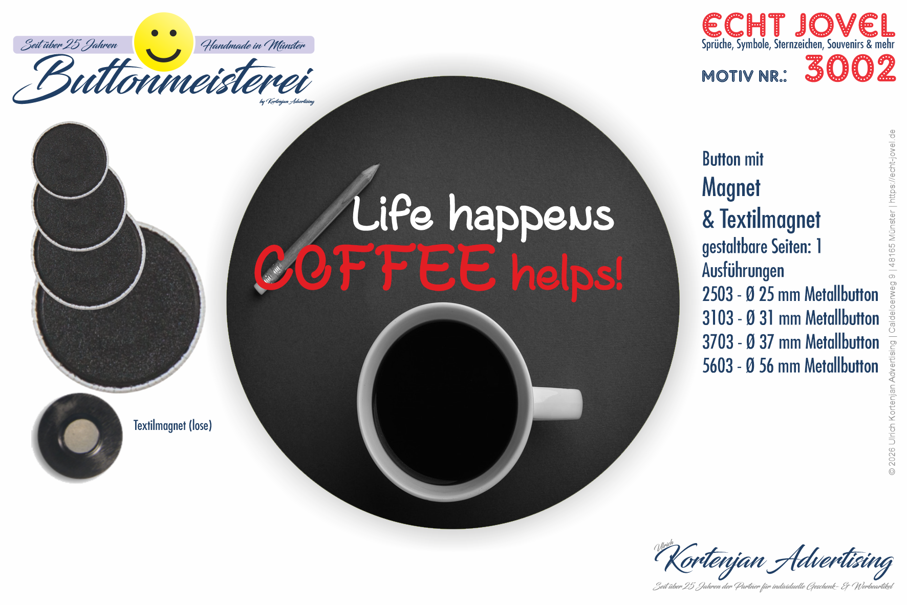 "Life happens" Buttons mit Sprüchen - verschiedene Größen & Ausführungen
