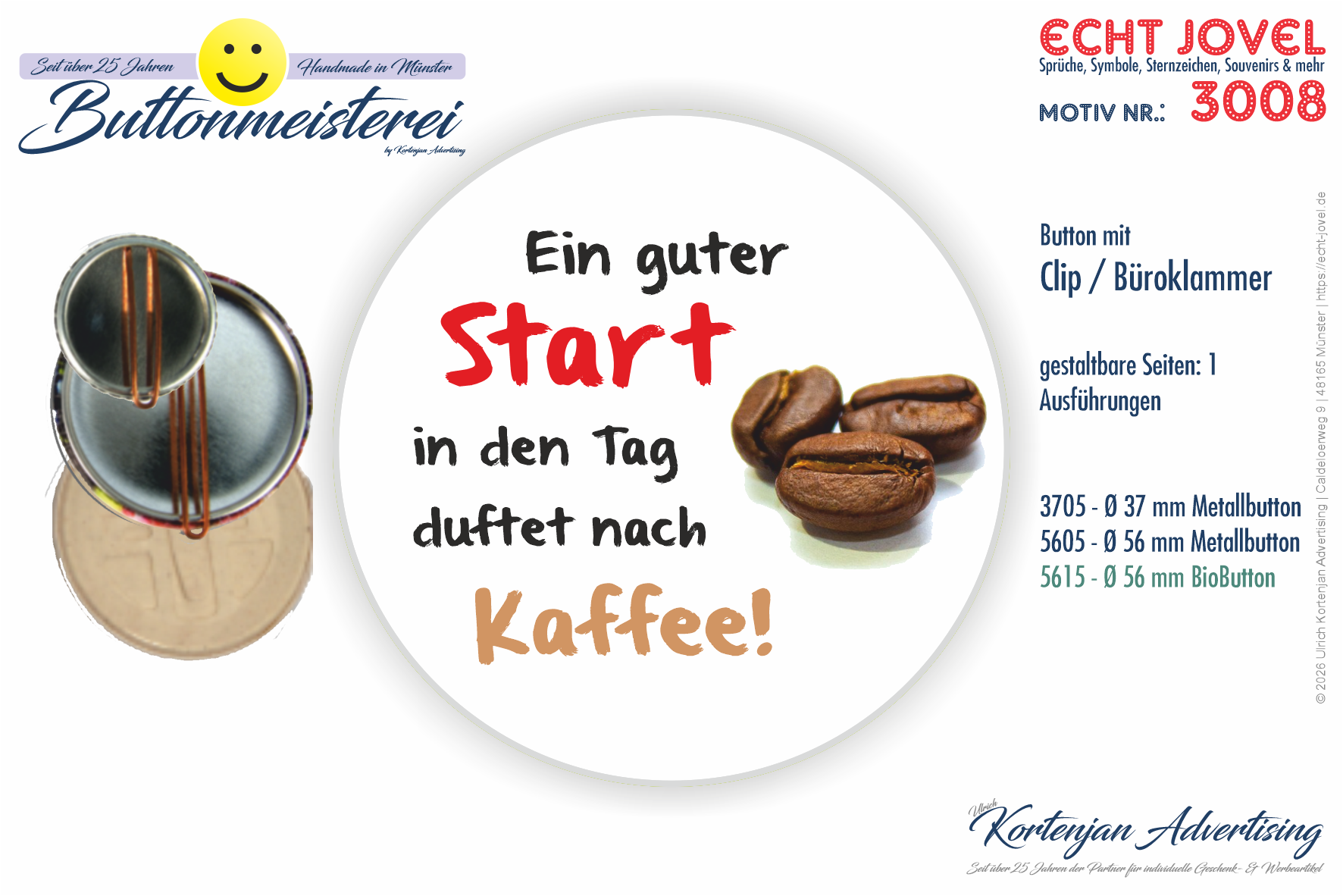Entdecken Sie unsere Buttons der Serie "Echt Jovel" mit witzigen Sprüchen, Weisheiten und Zitaten liebevoll gestaltet von unserem Grafikteam.