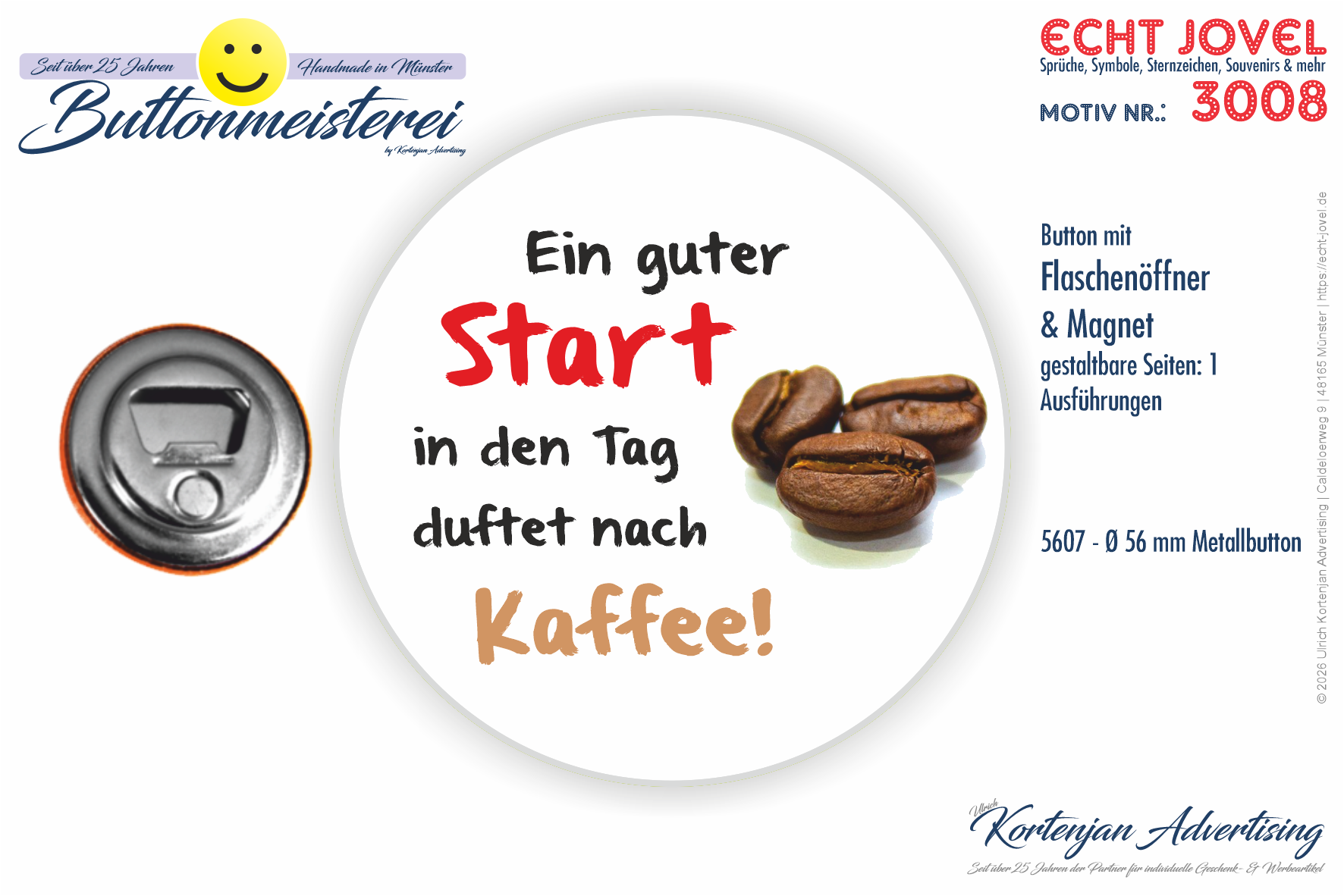 - Metall-Button mit Flaschenöffner & Magnet, Größe: Ø 56 mm